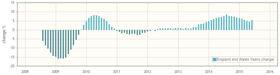 House price inflation England & Wales 2008 to May 2015, Source Land Registry