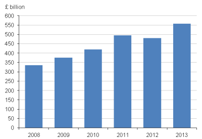 The Office of National Statistics (ONS) most recent report shows that eCommerce sales have grown steadily since 2008 to £557bn in 2013, representing nearly 20% of business turnover, although the ONS data does show a small drop from 2011 to 2012 as reported EDI[1]sales fell year on year[2]. This proportion has grown from around 14% of turnover in 2008.